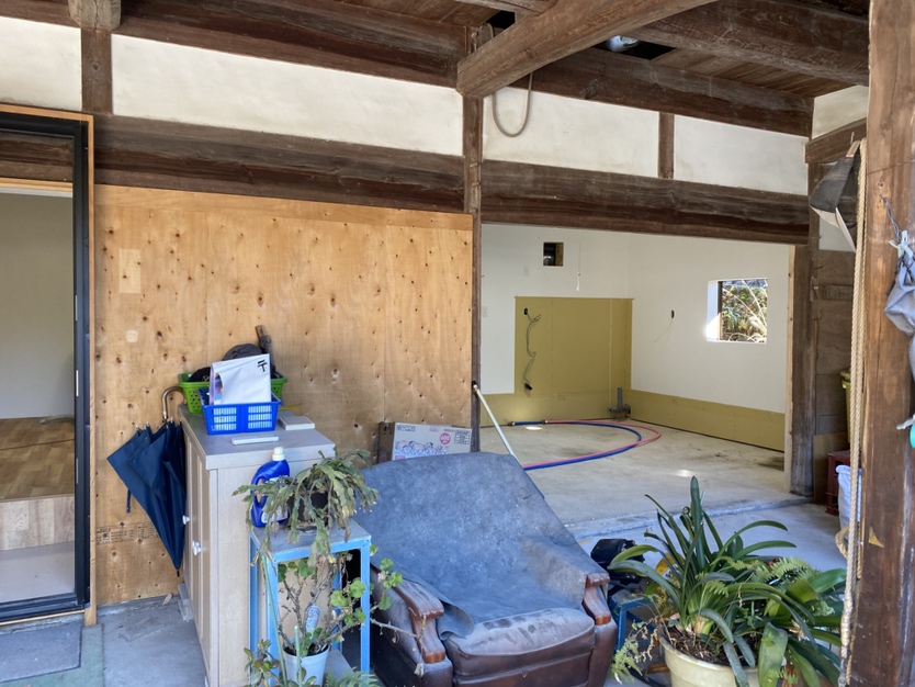 こうやって納屋の一部に仮住まいとして