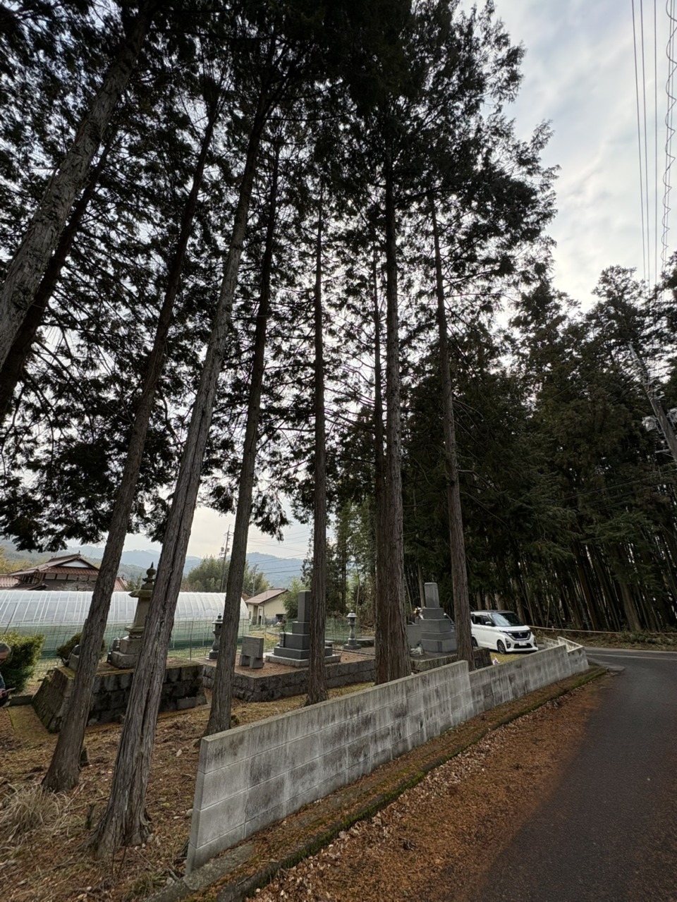 お墓のすぐそばにまあまあ大きなヒノキ
