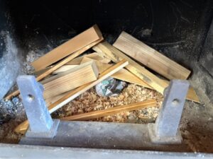 ↓前日の灰をちょっとキレイにします