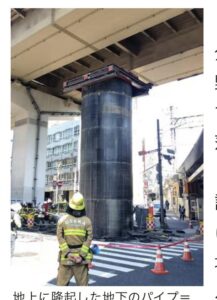 地下から突然現れた巨大パイプ