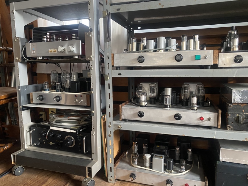 様々なアンプやレコードやCDが