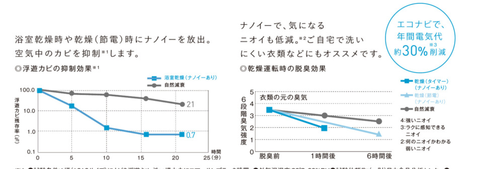 ↓ナノイーでカビや匂いを抑える換気扇